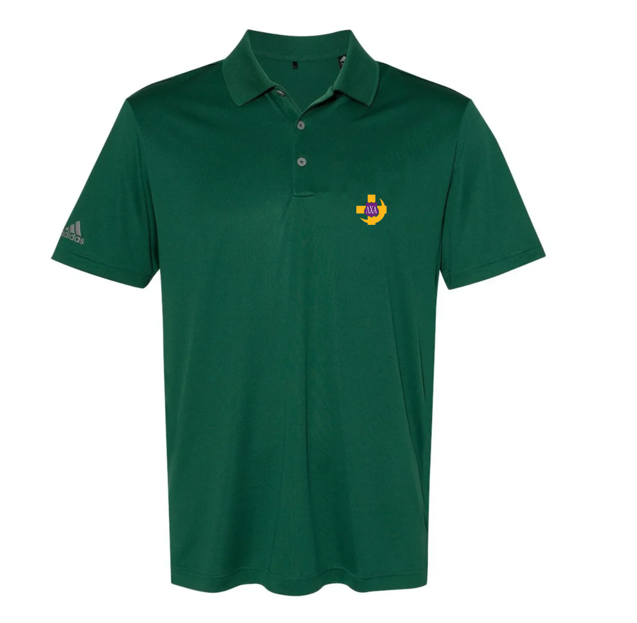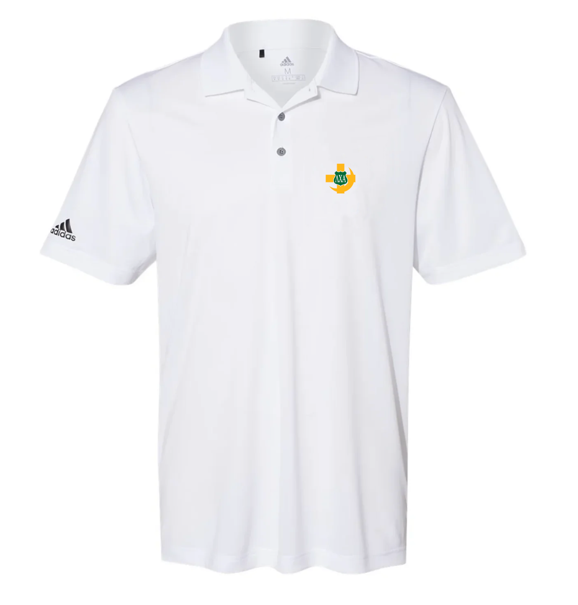 3.8 oz./yd² (US), 6.3 oz./L yd (CA), 100% recycled polyester; Hydrophilic finish; Ribbed-knit collar ; Three-button placket; Contrast heat-transfer logo on right sleeve. Available in Forest Green, White, Gray or Black and embroidered.